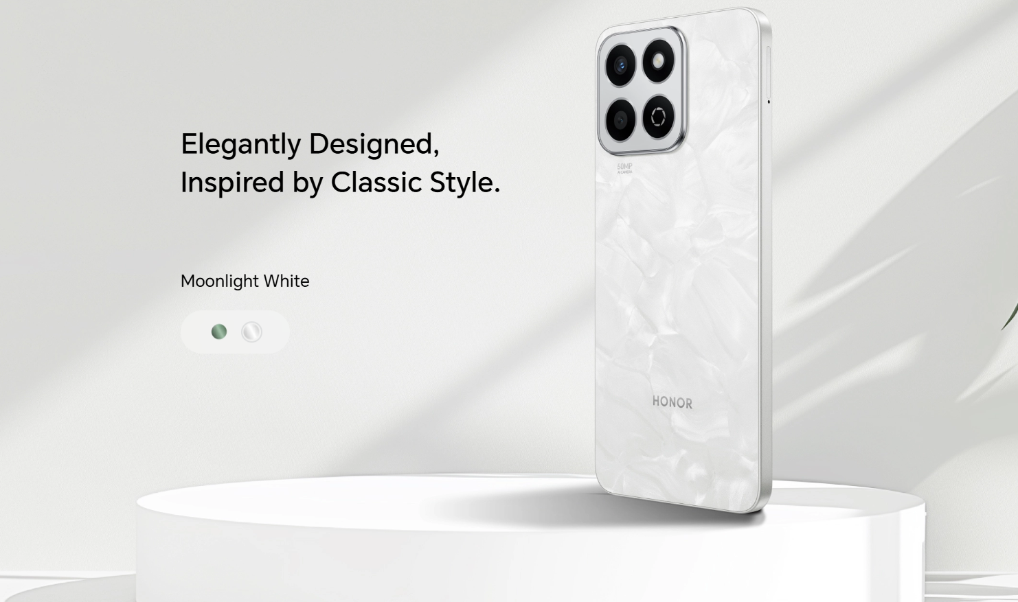 The Honor X7c 5G comes in two stunning colors: Forest Green and Moonlight White. It beautifully combines durability with a sleek, modern design, making it a fashionable choice for any lifestyle.